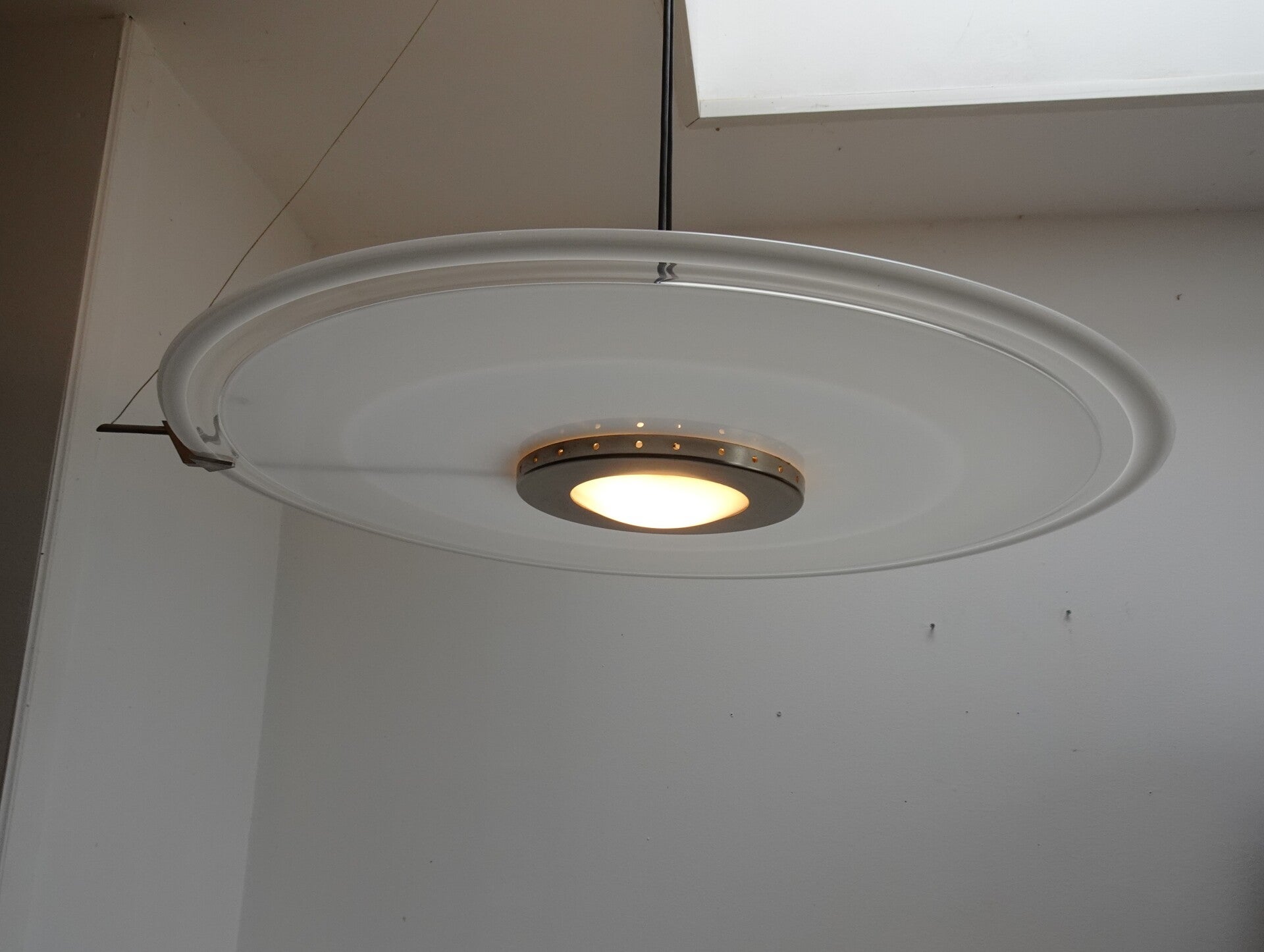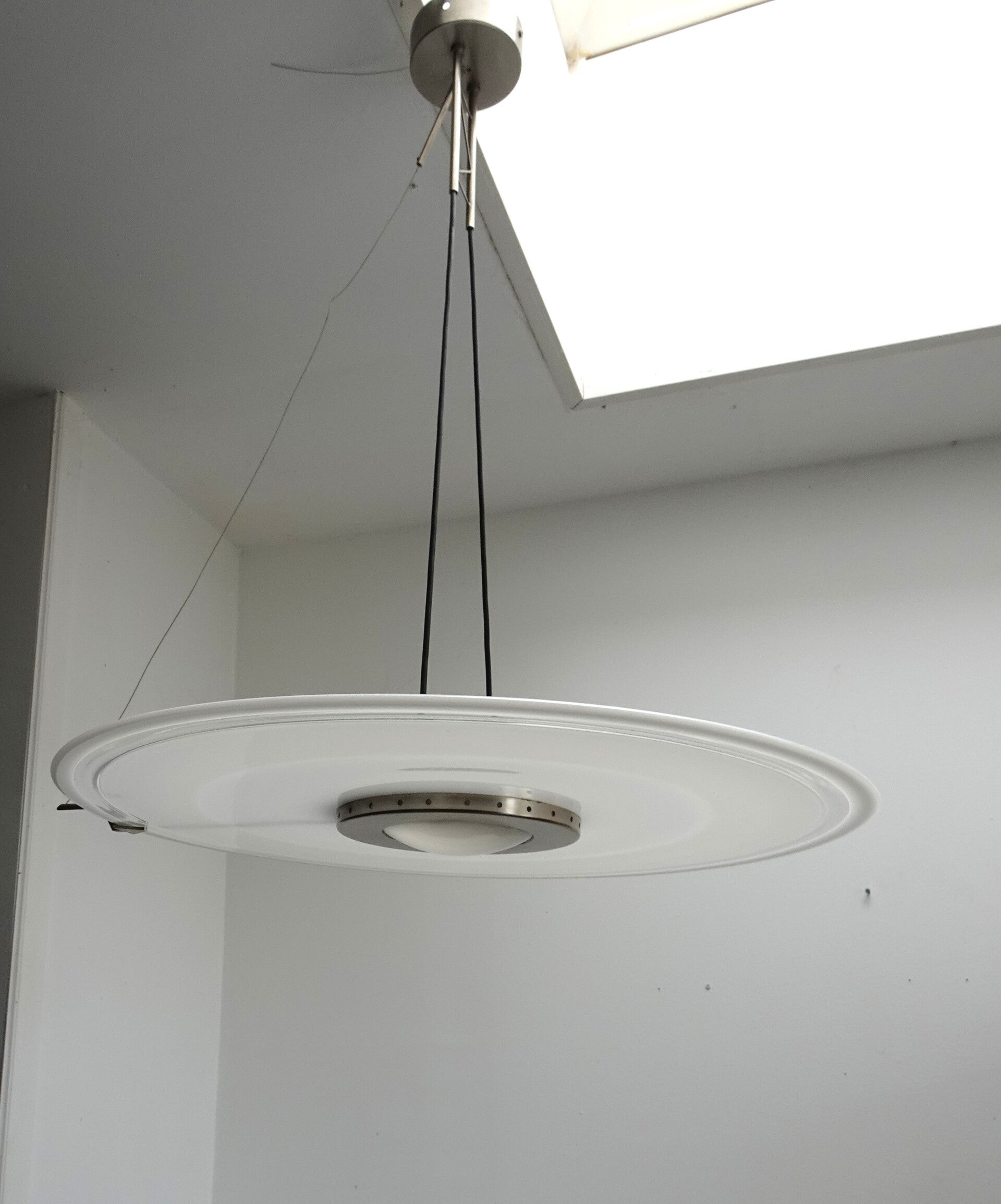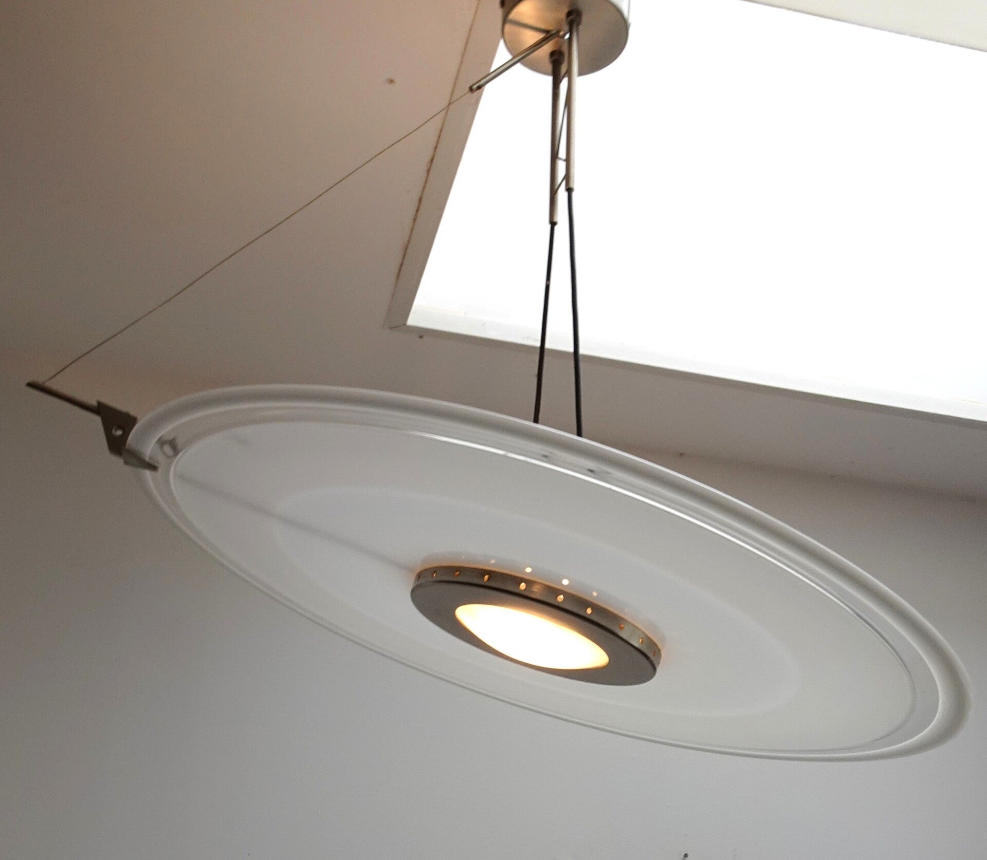 ADJUSTABLE IN ANGLE AND HEIGHT UFO VISTOSI MURANO GLASS CEILING LAMP BY ALOX ITALIA 1980s